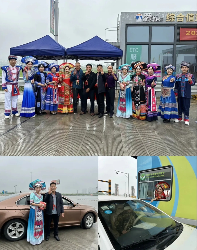 在六賓高速賓陽南收費(fèi)站,六賓高速公司的志愿者們身穿民族特色服裝,化身高速公路上的“阿哥”“阿妹”,在提供出行服務(wù)的同時,為過往司乘人員送上了滿滿的祝福以及具有民族特色的繡球、香囊,形成收費(fèi)站上一道靚麗的風(fēng)景線。