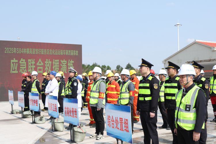為全面提升林橫高速對服務區(qū)?;愤\輸泄漏突發(fā)事故的應急處置能力,加強“一路多方”各部門間的協(xié)同配合,保障過往司乘生命財產(chǎn)安全,3月18日,南寧交投集團下屬南寧高速公司聯(lián)合賓陽縣應急局、生態(tài)局、交警、消防救援大隊、衛(wèi)生局及區(qū)執(zhí)法局二支隊四大隊、六大隊等單位,在林橫高速鄒圩服務區(qū)開展?;愤\輸泄漏突發(fā)事故應急聯(lián)合救援演練。