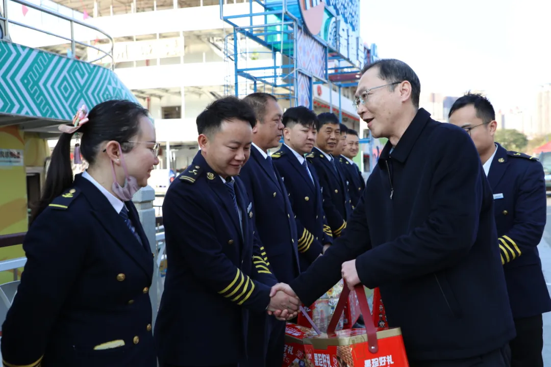“新年好!大家辛苦了!我來給大家拜年了“!2月20日,農(nóng)歷正月初四,南寧交投集團(tuán)黨委書記、董事長(zhǎng)曹壯來到民生碼頭,看望慰問春節(jié)期間仍然堅(jiān)守崗位、敬業(yè)奉獻(xiàn)的一線員工,向他們致以新春的美好祝福。